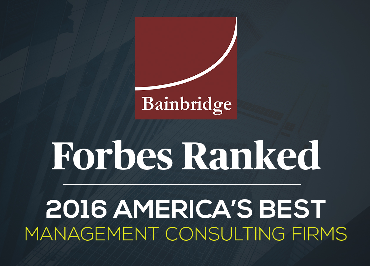 福布斯2016年:美國最佳管理諮詢公司 April 20, 2016 تصريحات صحفيه SAN DIEGO, CA – 福布斯雜誌 發布其排名 “美國最佳管理諮詢公司” 2016年與在線統計提供商合作, Statista. 該排名根據兩次在線調查的結果評估了“經典”管理諮詢公司,IT諮詢公司,審計公司的諮詢分支機構以及諮詢機構的分支機構。 在第一次調查中,來自管理諮詢公司的7,286個合作夥伴和項目經理被要求就15個行業和16個職能領域(包括戰略,人力資源諮詢和供應鏈管理)提出諮詢建議(不包括他們自己的)。 第二次調查的1,316名管理諮詢客戶被要求在過去四年內在諮詢公司工作的行業和職能領域內推薦諮詢顧問。根據這兩項調查結果,根據從同事和客戶那裡收到的總建議數量,諮詢公司按照字母順序將其分類為星號類別。 Bainbridge諮詢公司是一家位於聖地亞哥的MIT公司,該公司因其卓越的表現獲得了公認 7個行業 和 4個功能區,亦即: ·化學與製藥 ·消費品和零售 ·財務和風險管理 · … Read More
